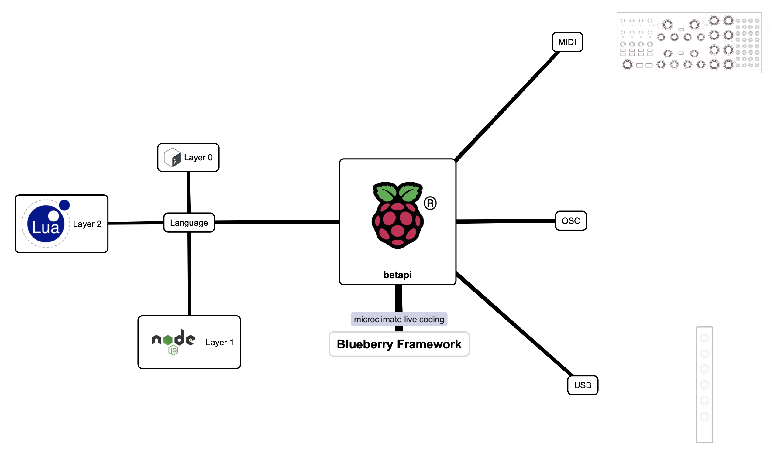 The Blueberry Framework is a custom setup for portable live coding with small computers that was first tested as a RaspberryPi. The main purpose of this exploration was to achieve the goal of extending live coding to the built environment through the live coding of GPIO pins on these small computers. This capability was explored with features such as the SERIAL o-sigv operator.